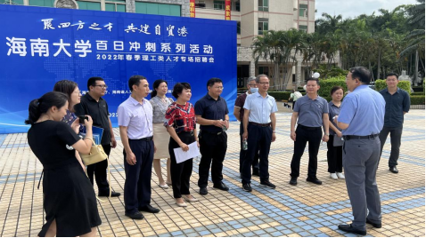 2022年5月13日上午,海南大学2022届毕业生理工类人才专场招聘会在海甸校区旅游广场举行。海南大学副校长傅国华和招生就业处领导到现场指导工作。william威廉亚洲官方积极联系用人单位参会,并宣传发动在校毕业生和2019级学生参加招聘会,积极搭建用人单位和毕业生供需交流平台,广泛开拓就业渠道和就业岗位,全力促进毕业生顺利就业。