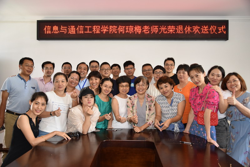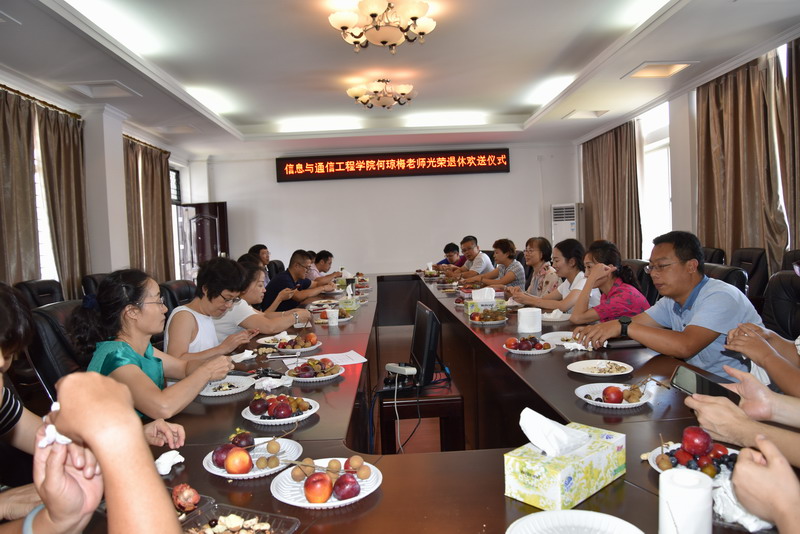 在交流座谈环节,大家纷纷给何老师送祝福,祝她身体健康,生活更充实,心态更年轻。大家共同回忆起以前工作的点点滴滴,感觉时光倒流到三十年前,那是一段激情燃烧的岁月,谈起有趣的片断,每个人放声大笑,说到动情处,有人眼睛里闪烁着晶莹的泪花,没有到现场参加欢送会的老师们,也在信息学院微信群里赠送祝福,通过文字传递着同事之间的恋恋不舍和深厚情感。