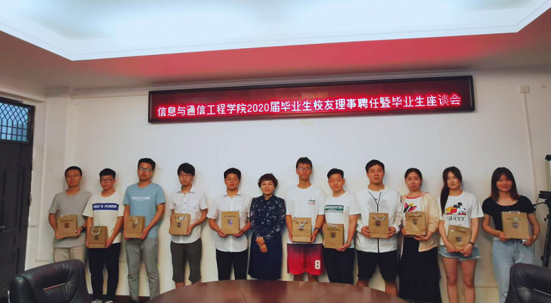 2020年6月3日下午,william威廉亚洲官方在319会议室举行2020届毕业生校友理事聘任仪式暨毕业生座谈会。学院院长黄梦醒、党委书记蒙秋妍、党委副书记王茂钢、分管本科教学工作副院长张永辉、分管研究生工作副院长王咸鹏、电子信息工程系副主任王冠军、通信工程系副主任杨永钦、学工办主任伍庆清和27名本科、硕士毕业生代表出席会议,会议由王茂钢副书记主持。
