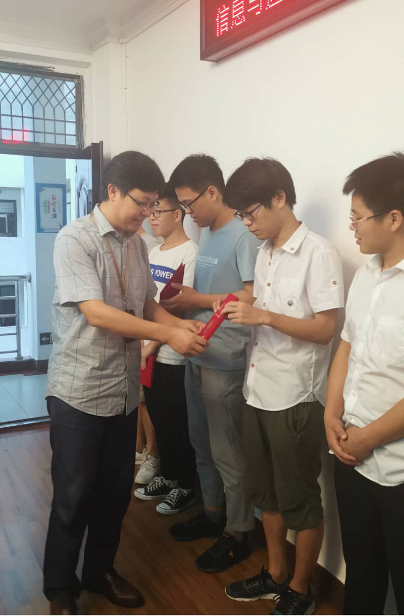 蒙秋妍书记给同学们发放纪念品