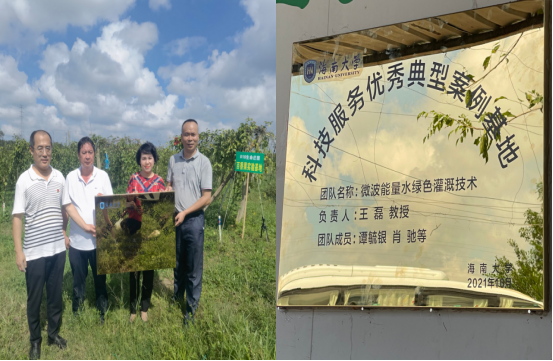 此次主题实践目的地是海南金田地有机生态农业示范基地,该基地隶属于海南金田地农业开发有限公司,公司成立于2015年,主要从事农业项目开发、农业技术研发、培训及咨询、果蔬种植、种苗繁育及产品销售。我院人工智能系王磊教授组建了微波能量水绿色灌溉技术团队,参与了基地科技服务工作,采用微波功能水灌溉技术在百香果种植中进行应用与研究,成果显著,该项目被评为学校科技服务优秀典型案例。