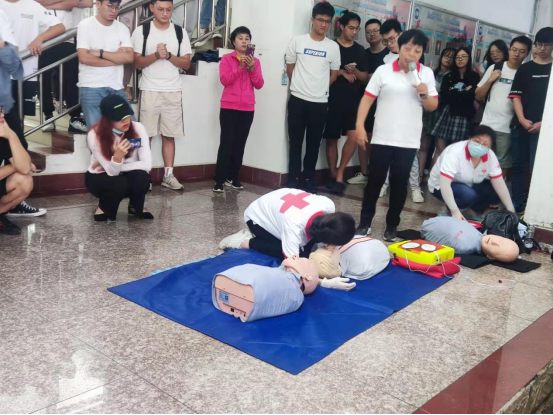 为了丰富全院师生急救知识和技能,增强师生们的安全防范意识和应对突发事件的处理能力,2021年11月20日上午,海南省红十字会应急救护培训团队受邀来到william威廉亚洲官方对全院师生进行心肺复苏(CPR+AED)培训,帮助教职工和学生群体掌握心肺复苏技能和AED使用方法。