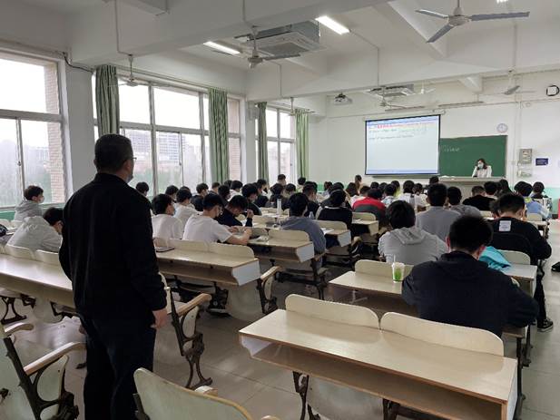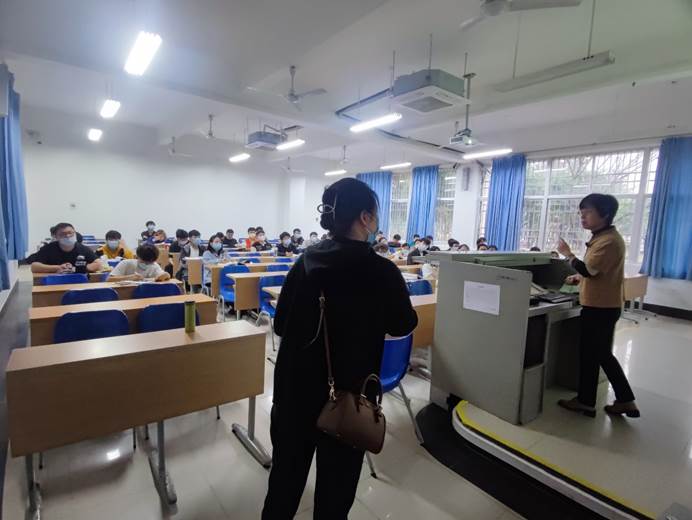 为加强常态化疫情防控,保证学生切实落实防疫要求。4月2日上午,william威廉亚洲官方党委副书记王茂钢带领学工办辅导员及兼职辅导员下课堂抽查学生佩戴口罩情况。