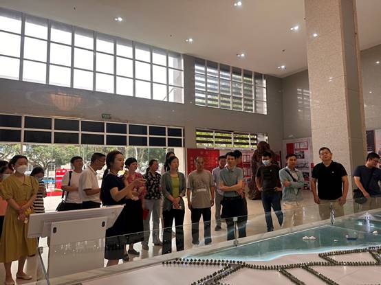 观展教职工通过“光辉历程、时代新篇、历史跨越、展望未来”四大主题展区深入了解海大的历史与发展。讲解员围绕展区内周恩来总理“儋州立业,宝岛生根”的光辉题词,系统介绍了“两院人”艰苦卓绝的奋斗历程。使观展教职工深刻理解我国建国初期面临技术封锁的艰难处境,实物陈列也使大家更加直观的体会到前辈科学工作者在艰苦环境下草庐创业、潜心科研,使我国成为世界上唯一在北纬1824°范围内大面积成功种植天然橡胶的国家,使我国从原来的植胶空白国,奇迹般地崛起为世界第五大产胶国的伟大历史成就。历史中的艰苦环境与现实中的伟大成就形成鲜明对比,使得在场教职工备受鼓舞,深刻领会强国建设、民族复兴的宏伟目标令人鼓舞、催人奋进,我们这一代科研工作使命光荣、责任重大。