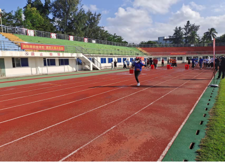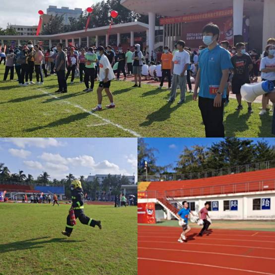 2021年11月9号下午,海口市119消防宣传月启动仪式暨海南大学消防运动会于在海南大学第一田径运动场正式开幕。此次运动会共设有消防水带接力赛、竞速运水灭火、着装灭火、水带收整极速大比拼、现场救援竞赛、携带水带折返跑等六个比赛项目,海南大学35个参赛队400余名参赛队员进行了激烈角逐。我院派出由学院工会委员王萍老师当领队的教职工代表队和学生代表队共10人参加了本次活动。经过激烈的角逐,我院代表队最终获得消防水袋接力赛第1名和团体总分第4名的好成绩。