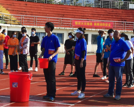 我院王萍、吴坤光、易家傅三位老师参与了竞速运水灭火比赛,他们顽强拼搏、奋勇争先,互相协同,在规定的时间内快速完成了比赛。
