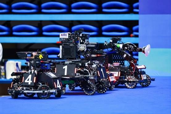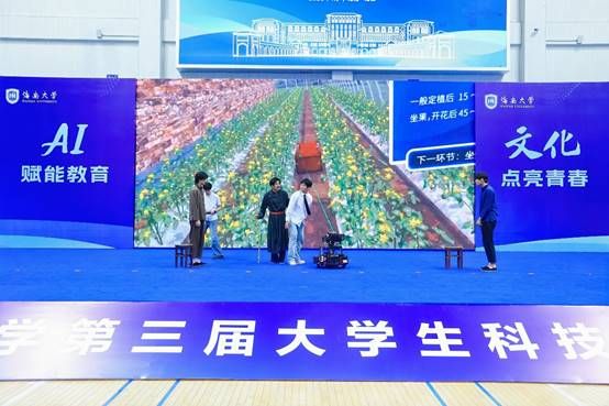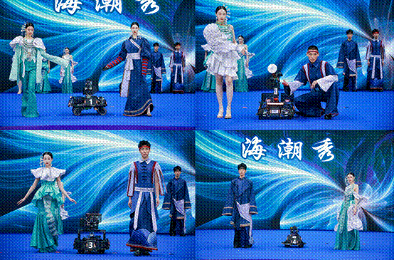 在“智耕科潮”中,首次融入了机器人走秀表演环节。轮式机器人灵活地穿梭于舞台之上,与演员们默契配合,以自定义动作编程演绎了独特的“科技时装秀”。有的机器人模拟农作物播种,有的模拟喷洒农药作业,还有的背负着数字化种植设备,象征智能农业的未来图景。机器人通过精准的动作控制,完成了一系列复杂的表演任务,让观众仿佛置身于未来科技世界,赢得了现场阵阵掌声。这一走秀设计不仅体现了机器人灵活运动控制和情境适应能力,更以富有创意的方式与当代艺术相结合,展现了科技与人文碰撞的魅力,展示了海南大学在机器人技术领域的创新应用成果。